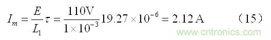 根據前麵分析,以及圖8和圖11,正常工作時,流過高壓包初級線圈的最大電流Im不應該超過極限電流值Imax的70%,由此,可以求得流過高壓包初級線圈的極限電流Imax為3.21 A 。