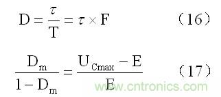 進一步求占空比D和工作頻率。下麵(16)式和(17)式是計算脈衝寬度