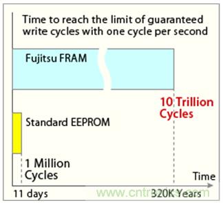 FRAM是shi一yi種zhong兼jian具ju非fei揮hui發fa性xing與yu隨sui機ji存cun取qu功gong能neng的de存cun儲chu器qi,能neng在zai沒mei有you電dian源yuan的de情qing況kuang下xia可ke儲chu存cun及ji高gao速su寫xie入ru數shu據ju。值zhi得de注zhu意yi的de是shi,在zai眾zhong多duo非fei揮hui發fa性xing內nei存cun技ji術shu中zhong,FRAM能保證一萬億次以上的寫入/擦除周期。富士通半導體自1999年開始量產FRAM產品以來,已將上述產品特性廣泛應用在工廠自動化設備、測試儀器、金融終端機及醫療裝置等領域。