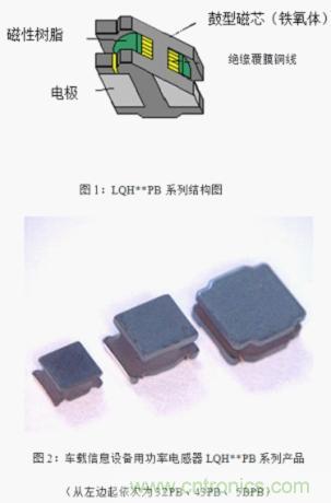 LQH**PB係列產品是在最高可達105℃的環境下使用的繞線型電感器,該係列在2012年5月被產品化至今已經有2年的生產業績。LQH**PB係xi列lie的de構gou造zao是shi在zai鼓gu型xing磁ci芯xin周zhou圍wei纏chan繞rao絕jue緣yuan覆fu膜mo銅tong線xian,以yi減jian少shao漏lou磁ci及ji保bao護hu絕jue緣yuan覆fu膜mo銅tong線xian達da到dao提ti高gao產chan品pin強qiang度du等deng目mu的de,是shi一yi種zhong塗tu有you磁ci性xing樹shu脂zhi類lei型xing的de產chan品pin。其qi結jie構gou圖tu如ru圖tu1,產品照片如圖2。