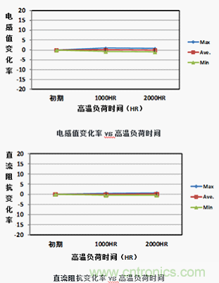 在圖8中,顯示了對於LQH43NN222K03在+105℃環境下,接通額定電流後的高溫負荷試驗中的主要電氣特性變化。電氣特性的變化在±1%以內,外觀未發現明顯異常。通過采用耐熱性等級高的電線,在高溫環境下也能保持高可靠性。