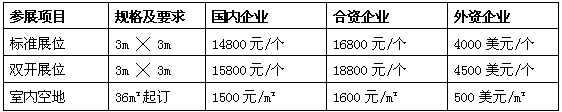標準展位配置包括:每個標準展位三麵牆板、二支射燈、一張谘詢桌、兩把椅子、地毯、220V交流電源插 座一隻,中英文楣板等。室內光地展位無任何配置:(需36㎡起租)。