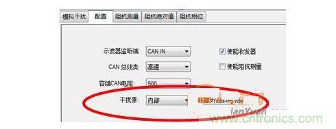 打開CANStress配置,將幹擾源確定為內部。保證CANL對地短路。如圖 7所示。