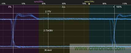 在以往的測試中,我們隻能通過示波器測量1bit的差分電平顯性位的末端幅值,然後在測量前半段(50%)差分電平最大值,兩者相除,如果在81%~150%則通過;