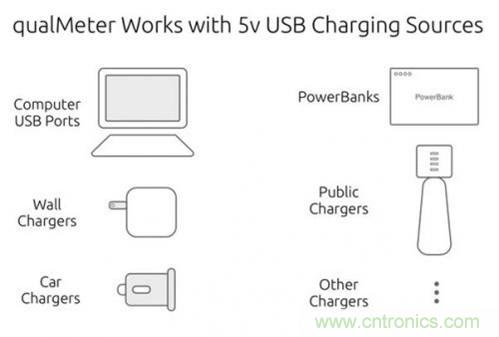 qualMeter能用於各種主流的USB充電線纜的測試,它還可以測試5V充電器的帶負載能力,從而大致確定其質量。