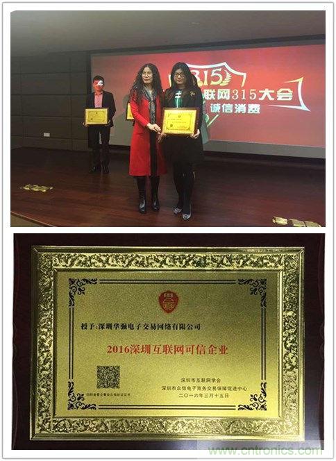 【導讀】“3.15”是國際消費者權益日,當天下午,2016深圳互聯網315大會在中國(深圳)新媒體廣告產業園舉辦。大會現場頒發了深圳“可信企業”驗證3項大獎,深圳華強電子交易網絡有限公司獲獎,成為5家“2016深圳互聯網可信企業”之一。