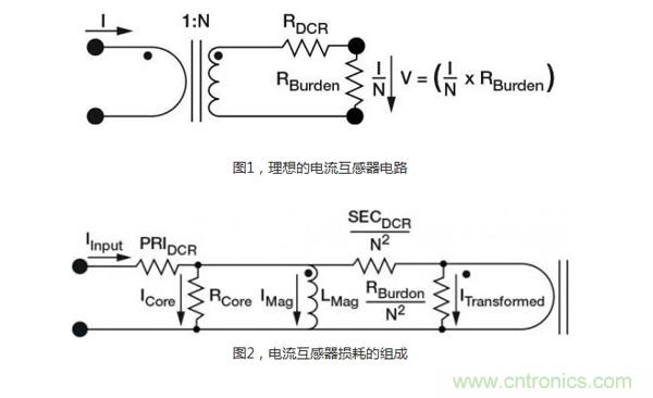 電流互感器(圖1)有三個突出優點:與yu線xian電dian壓ya隔ge離li,無wu損sun測ce量liang電dian流liu,大da信xin號hao電dian壓ya能neng很hen好hao地di抵di禦yu噪zao聲sheng。這zhe種zhong間jian接jie測ce量liang電dian流liu的de方fang法fa要yao求qiu用yong到dao變bian化hua的de電dian流liu,例li如ru交jiao流liu電dian,瞬shun變bian電dian流liu或huo開kai關guan式shi直zhi流liu電dian,來lai產chan生sheng一yi個ge磁ci耦ou合he到dao次ci級ji繞rao組zu裏li的de變bian化hua磁ci場chang。次ci級ji測ce量liang電dian壓ya可ke以yi根gen據ju在zai初chu級ji和he次ci級ji繞rao組zu間jian的de匝za數shu比bi實shi現xian縮suo放fang。這zhe種zhong測ce量liang方fang法fa被bei認ren為wei是shi“無損的”,因為電路電流通過銅繞組時的電阻損耗非常小。但是,如圖2所示,由於負載電阻、芯損,以及初級和次級直流電阻的存在,互感器的損耗會導致失去一小部分能量。