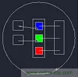 大家都知道,一個全彩燈珠需要五條焊線,如圖所示