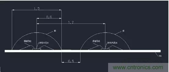 從物理空間尺寸來看,COB封裝在設計燈珠直徑時不再受製於支架尺寸的限製,如下圖所示: