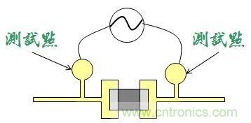 但(dan)是(shi)如(ru)果(guo)讓(rang)這(zhe)些(xie)探(tan)針(zhen)直(zhi)接(jie)接(jie)觸(chu)到(dao)板(ban)子(zi)上(shang)麵(mian)的(de)電(dian)子(zi)零(ling)件(jian)或(huo)是(shi)其(qi)焊(han)腳(jiao),很(hen)有(you)可(ke)能(neng)會(hui)壓(ya)毀(hui)一(yi)些(xie)電(dian)子(zi)零(ling)件(jian),反(fan)而(er)適(shi)得(de)其(qi)反(fan),所(suo)以(yi)聰(cong)明(ming)的(de)工(gong)程(cheng)師(shi)就(jiu)發(fa)明(ming)了(le)「測試點」,在零件的兩端額外引出一對圓形的小點,上麵沒有防焊(mask),可以讓測試用的探針接觸到這些小點,而不用直接接觸到那些被量測的電子零件。