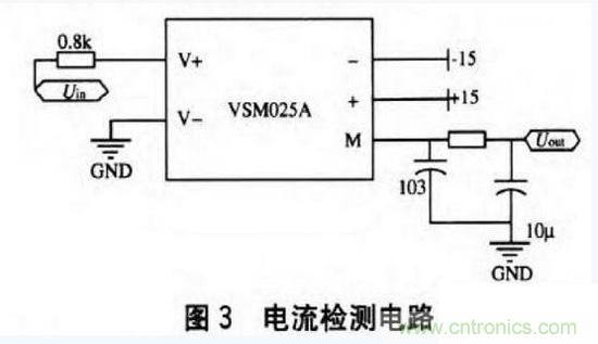係(xi)統(tong)所(suo)要(yao)檢(jian)測(ce)的(de)信(xin)號(hao)采(cai)用(yong)霍(huo)爾(er)傳(chuan)感(gan)器(qi)法(fa)檢(jian)測(ce),如(ru)被(bei)測(ce)電(dian)源(yuan)設(she)備(bei)向(xiang)該(gai)簡(jian)易(yi)直(zhi)流(liu)電(dian)子(zi)負(fu)載(zai)輸(shu)入(ru)的(de)電(dian)壓(ya),以(yi)及(ji)流(liu)進(jin)負(fu)載(zai)的(de)電(dian)流(liu)。電(dian)壓(ya)和(he)電(dian)流(liu)檢(jian)測(ce)分(fen)別(bie)通(tong)過(guo)電(dian)壓(ya)霍(huo)爾(er)、電dian流liu霍huo爾er傳chuan感gan器qi檢jian測ce,並bing經jing過guo必bi要yao的de輸shu出chu轉zhuan換huan電dian路lu後hou轉zhuan換huan為wei檢jian測ce信xin號hao。為wei了le提ti高gao係xi統tong的de抗kang幹gan擾rao性xing,檢jian測ce信xin號hao經jing過guo一yi個ge低di通tong濾lv波bo器qi濾lv除chu噪zao聲sheng,再zai送song入ru單dan片pian機ji的deAD轉換器中。其中電流霍爾的原理圖如3所示。
