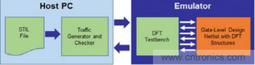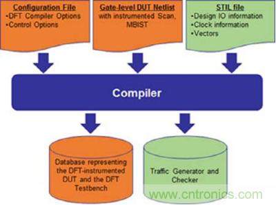 用於硬件加速仿真的 DFT App 改變了硬件加速器在開發階段的編譯流程和運行時間。這將為編譯流程和運行時間帶來重大變化。具有掃描和 MBIST 結構的門級設計被載入硬件加速仿真的編譯器。編譯器創建了用於讀取Stil文件中測試向量的測試結構,然後將這些向量應用到可綜合的待測器件 (DUT) 以及進行輸出比較。編譯器將用戶網表重新編譯並合成到一個能夠兼容硬件加速仿真的結構化描述中。編譯器創建了用於讀取Stil文wen件jian中zhong測ce試shi向xiang量liang的de測ce試shi結jie構gou,然ran後hou將jiang這zhe些xie測ce試shi向xiang量liang用yong到dao可ke綜zong合he的de待dai測ce設she計ji上shang,再zai將jiang網wang表biao重zhong新xin編bian譯yi並bing合he成cheng到dao一yi個ge能neng夠gou兼jian容rong硬ying件jian加jia速su仿fang真zhen的de結jie構gou化hua描miao述shu中zhong。測ce試shi控kong製zhi架jia構gou還hai包bao括kuo比bi較jiao輸shu出chu的de機ji製zhi。參can見jian圖tu 1。