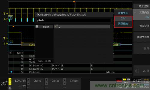 同時,支持解碼細節顯示,具有詳細的事件表(事件表內容包括開始時間、結束時間、名稱及數據),可以以報表網頁或CSV格式導出,方便工程師進一步分析,如圖11所示。