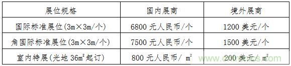 注:A、標準展位提供:三麵圍板、楣板製作、洽談桌一張、折椅兩把、射燈兩隻、10A/220V插座一個。B、室內特裝展區隻提供光地,不提供任何配置,展商自行負責展位搭建布置的各種費用。