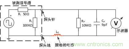 youyudixianshiyigendaoxian,yincitayouyidingshuliangdefenbushidiangan,xianyuechangdianganzeyueda。changguideceliangfangfajiuhuiyoueyuxianyinrufenbushigan,cishitadedengxiaomoxingrutu4所示的LG電感,這一電感將與探頭電容相互影響,在LG和CP值確定的某個頻點上形成諧振,導致減幅振蕩現象的產生。