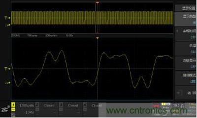 本文以ZDS4054Plus示波器為測試工具,圖 1 如所示波形是在 200mv/div 檔位下采樣的,波形相對平穩。停止采樣後,如果將垂直檔位調至 50mv/div,則波形出呈現嚴重的鋸齒狀,如圖 2 所示。為此很多人感到疑惑,為什麼會出現這種現象?