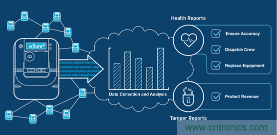 mSure 是一種非侵入診斷技術,可以監控傳感器的精度和故障狀況。電力公司電表采用ADI公司的全新電能計量IC,可以提供電表運行數據。