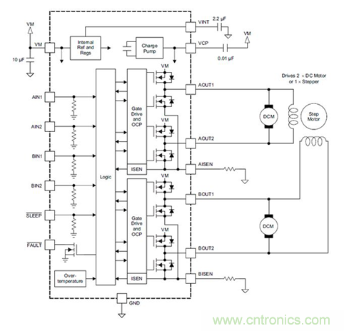 DRV8833:具有電機電流控製和低RDSon 360的雙H橋電機驅動器毫歐。