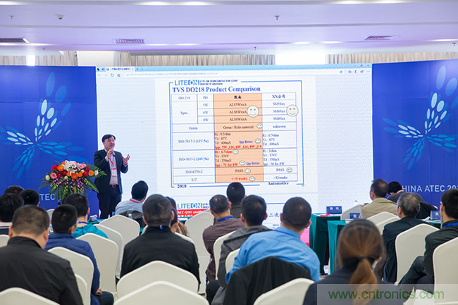 光寶集團敦南科技股份有限公司分離式元件事業部汽車電子產品部資深經理張峰銘精彩分享汽車模塊拋負載的解決方案。
