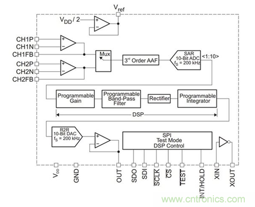 表 2 顯示了各種頻率輸入信號的輸出信號振幅的測試數據。 已對每個器件的帶通濾波器進行編程,使其具有 6.94kHz 的中心頻率,因此應抑製遠離該中心頻率的輸入信號。