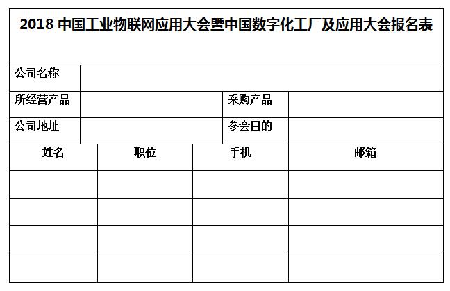 2018中國工業物聯網應用大會暨中國數字化工廠及應用大會報名表
