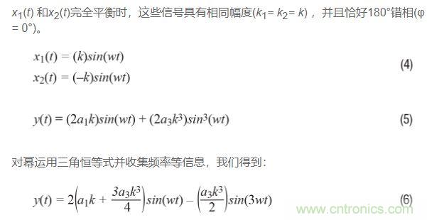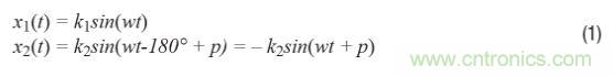 考慮ADC、放大器、巴倫等或任何將信號從單端轉換為差分(或反之)的器件的輸入x(t)。信號對x1(t)和x2(t)是正弦信號,因此差分輸入信號具有如下形式: