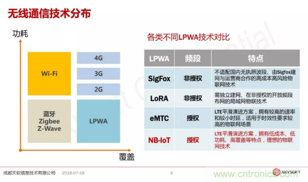 【導讀】CEDA近日在成都舉辦的West China IoT Forum-2018工業物聯網,車聯網與5G技術峰會,特邀業界專家分析技術方案和趨勢。成都天軟信息技術有限公司(Skysoft,簡稱天軟信息)產品總監黃斌在峰會上做了《NB-IoT技術方案與行業應用》的報告,擁有豐富物聯網和通信網絡行業經驗的黃斌,介紹了無線通信技術分布,對比了各類不同LPWA技術,分析了NB-IoT的部署及傳輸模式,NB-IoT的生態鏈,天軟信息模組方案,行業應用案例以及未來發展方向。