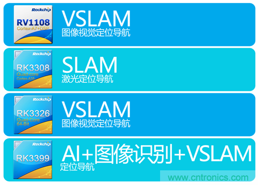 典型的比如瑞芯微日前向業界公布了四款“AI人工智能掃地機器人”芯片級解決方案:RK3399、RV1108、RK3326及RK3308,支持從AI到VSLAM及激光導航等功能,全麵覆蓋從高端到入門級別掃地機器人產品,助力第四代AI人工智能掃地機器人定位導航的標準的定義及升級。瑞芯微在掃地機器人生態上,擁有很多算法合作夥伴以及ODM/OEM客戶,涵蓋了激光,VSLAM,AI等方向,可實現快速量產。