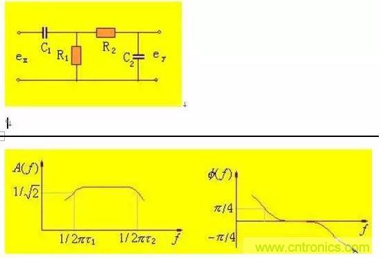 帶通濾波器可以看作為低通濾波器和高通濾波器的串聯,其電路及其幅頻、相頻特性如下圖所示。