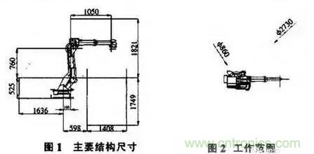 根據A II—V6L型工業機器人的主要參數進行設計。主要結構尺寸如圖I所示。機器人的工作範圍見圖2。