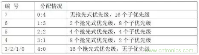 兩種優先級由4位二進製位決定。分配下來有十六種情況: