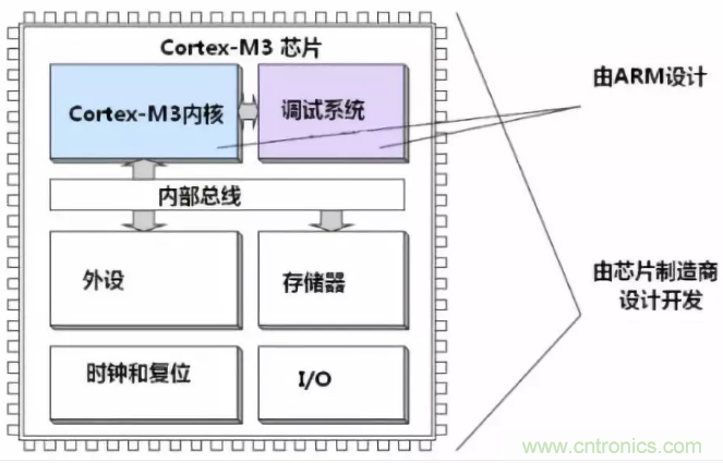 10、ARM公司隻生產內核標準,不生產芯片。ST、TI這樣的公司從ARM公司那裏購買內核,然後外加自己的總線結構、外設、存儲器、始終和複位、I/O後就組成了自己的芯片。