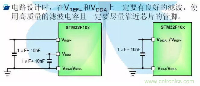 15、ADC的Vref+和Vdda與VSS,Vref-一定要加高質量的濾波電容,切靠近單片機。