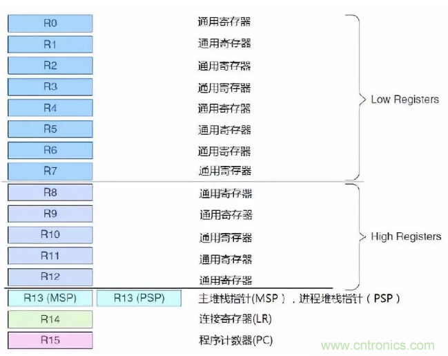 33、MSP是係統複位後使用的堆棧指針,PSP由用戶的代碼使用。兩個堆棧指針為4字節對齊!!
