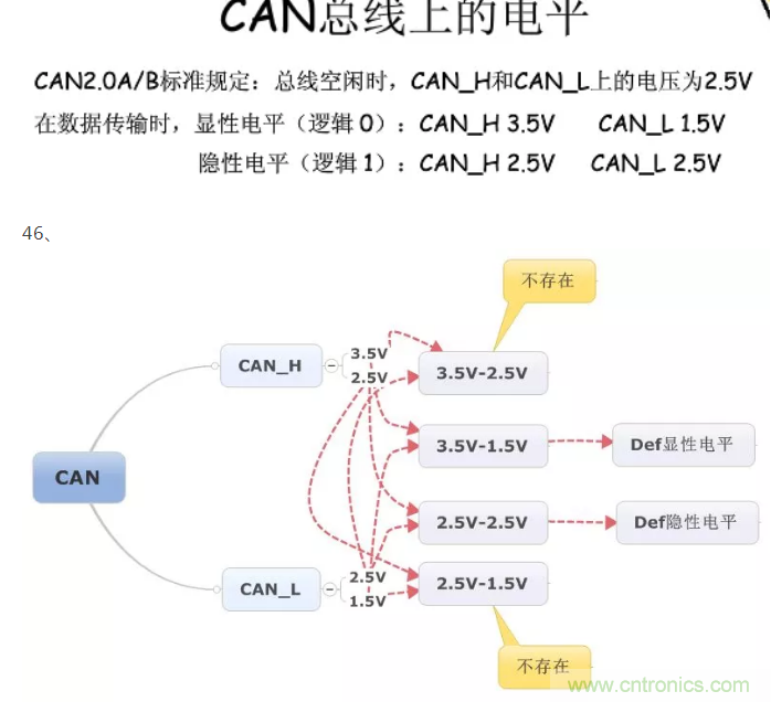 45、CAN協議有兩個標準,ISO11898(針對125kbps~1Mbps的高速速率)和ISO11519-2(125kbps以下的低速速率)