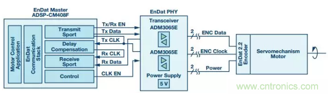 本文討論的EnDat接口是在ADI的ADSP-CM40x上實現,後者是一款針對電機控製驅動器而開發的處理器。除了脈寬調製器(PWM)定時器、模數轉換器(ADC)和sinc濾波器等用於電機控製的外設以外,ADSP-CM40x還有高度靈活的串行端口(SPORT)。