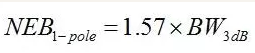 對於單極點低通濾波器,它是–3dB帶寬的1.57倍,寫成公式就是: