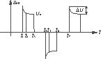 2)t2-t3時段 uAB="Uo",D12反偏截止。D1與D4導通,忽略D1與D4上的壓降,UEF=Uo。以E為電壓參考點,UF比UE電位低Uo,記作-Uo;由於UC=UEG=Uo+ΔUo,則UG比UE低Uo+ΔU,記作-(Uo+ΔU);這樣UFG=UF-UG=ΔU。