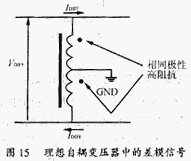 從差模信號看,有中心抽頭的自耦變壓器是兩個在相位上相同的對分繞組,見圖15。zhejiuyiweichamodianliuzaiqizhongsuoxingchengdecichang,huishiqiduichamodianliuchengxiangaozukang。xiangdangyuduichamoxinhaobinglianleyigegaozuzhidezukang,taduichamoxinhaodedaxiaomeiyouyingxiang。