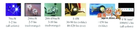 隨著應用層麵的不同,車廠也選用不同的LED光源封裝對應不同的環境要求,依需求亮度不同可簡單分為指示用、照明用與投射用三種不同需求。指示用光源可見於第三刹車燈、尾燈組(尾燈、刹車燈、轉向燈等)、側燈等,其光源輸出流明值低,所需功率低,約在70mW ̄200mW,chanshengdereliangduiyufengzhuangtiyingxiangjiaoxiao,yincizaifengzhuangshanghuihulvecireliangzaochengdeyingxiang,erzhijieliyongshuzhileicailiaobaofuzhengtiyijinxingfengzhuang,eryinweishuzhiderechuandaoxishudi(W/mK),所以其相關熱阻會因散熱不易而升高至50 ̄200K/W;而照明用光源其封裝功率會相對提高,除了可應用於指示用光源類的產品之外,亦可用於亮度要求較高的日行燈、霧燈、前方向燈等,但也因為損耗功率增加(功率約在1 ̄5W),散熱部分不能如指示光源般不考慮散熱問題,除了樹脂類材料封裝外尚需利用金屬塊將熱導出以維持出光效率,其熱阻維持在15K/W以下;而投射用光源則是光源封裝亮度需求最高者,其應用產品以前照係統(遠燈、近燈、霧燈等)為主,其單體封裝需在4W以上,而在熱阻上需小於5K/W,以確保在引擎室的高溫下能維持散熱能力,並保持光源輸出效率在可用的範圍內。