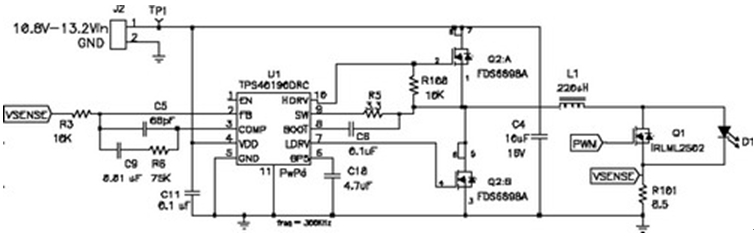 圖9 Q1 用於PWM LED電流