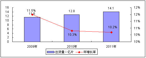 圖2 2009-2011年中國中小尺寸液晶麵板出貨量規模預測