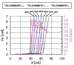 ROHM開發了新型結構(專利申請中)動作溫度保持70ºC,工作電流為70mA的優越的溫度特性和低電流工作實現了自動脈衝式雙波長激光二極管「RLD2WMUR1」,「RLD2WMFR1」,「RLD2WMDR1」。