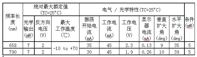 主要規格(上端:658nm(CD用),下端:790nm (DVD用))