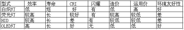 OLED燈的特點及與現有光源的比較
