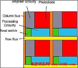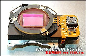 OlympusE1CCD感光套件(包含超音波除塵器)放大器位置和數量比較CCD和CMOS的結構,放大器的位置和數量是最大的不同之處,會在下一講CCD感光元件工作原理(上),提及完整的感光元件作業流程。此講中,Mr.OH!簡單地解釋:CCD每曝光一次,自快門關閉或是內部時脈自動斷線(電子快門)後,即進行畫素轉移處理,將每一行中每一個畫素(pixel)的電荷信號依序傳入『緩衝器(電荷儲存器)』中,由底端的線路導引輸出至CCD旁的放大器進行放大,再串聯ADC(類比數位資料轉換器)輸出;相對地,CMOS的設計中每個畫素旁就直接連著『放大器』,光電訊號可直接放大再經由BUS通路移動至ADC中轉換成數位資料。