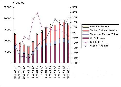 09年10月台灣廠商大尺寸液晶麵板供貨量時隔9個月比上月減少