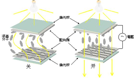 圖2是液晶點陣(像素點)的工作原理圖,在沒有驅動信號的情況下,液晶分子按一定扭曲角排列,因此,光線很難通過液晶;zaiqudongxinhaodezuoyongxia,yejingfenzijiuhuibeijihuadaidian,jihuadaidiandeyejingfenzijiuhuiandianlixiandefangxiangyouxudijinxingpailie,jiniuqujiaojianghuibianxiao,zheyangguangxianjiuhenrongyitongguo。yejingxianshiqijiushitongguokongzhiyejingfenzideniuqujiaodaxiao,congerkongzhiguangdechuantouqiangdulaigongzuode。