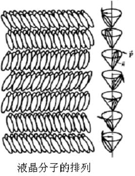 液晶就是介於液體與固體之間的一種混合體物質,在沒有電場力的情況下,液晶分子的排列一般是雜亂無章的;在電場力的作用下,液晶分子就會被極化帶電,極化帶電的液晶分子就會按電力線的方向有序地進行排列;當電場力消失的時候,液晶分子極化帶電的現象並不會立即消失(與駐極體相似),因此,液晶分子還是按一定的方向排列,隻不過是沒有在電場力的情況下排列得那麼整齊,這種現象就是所謂的液晶向列扭曲,圖1是液晶分子的排列結構。
