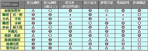 表1是各種觸控麵板結構特性比較一覽。接著將依序介紹觸控麵板的結構性特徵與動作上的優缺點。
